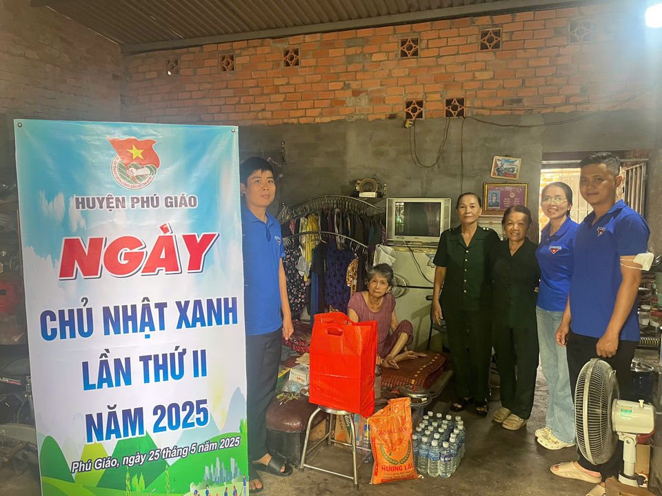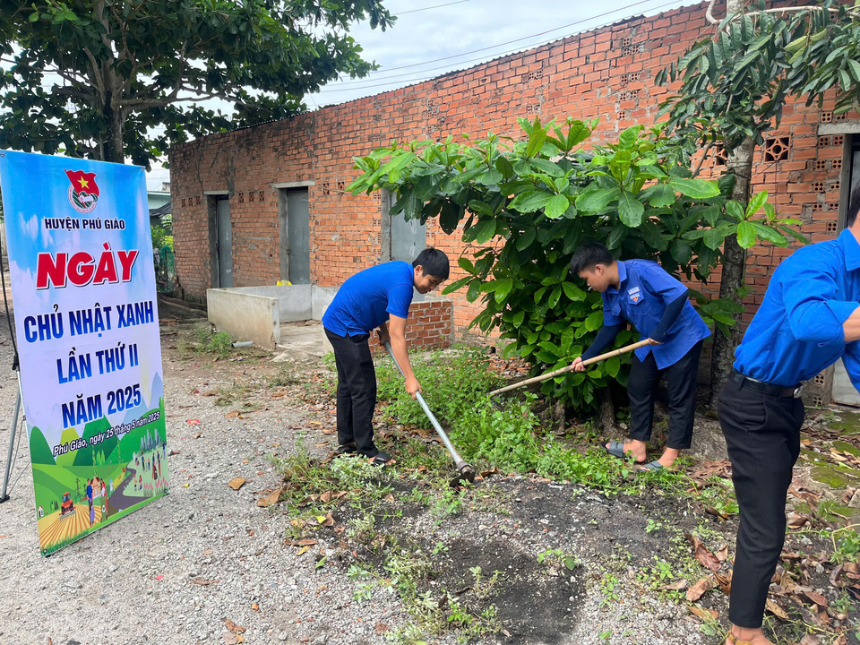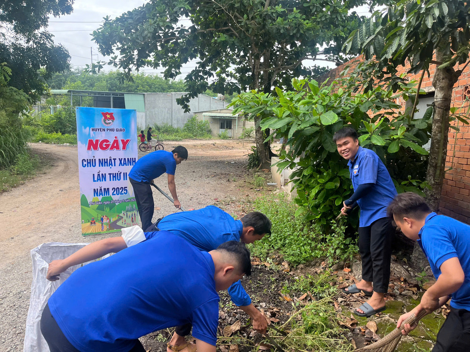 Sáng 25/5/2025, tuổi trẻ huyện Phú Giáo đồng loạt ra quân thực hiện Ngày Chủ nhật xanh đợt 2 năm 2025, hưởng ứng Ngày Môi trường Thế giới 5/6 và. Hoạt động thu hút sự tham gia của gần 1.000 đoàn viên, thanh niên tại tất cả các cơ sở Đoàn trong huyện.