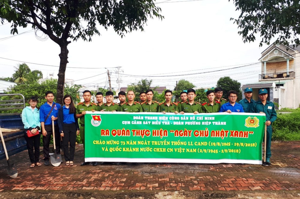 TTBD - Trong không khí thi đua sôi nổi lập thành tích chào mừng kỷ niệm 73 năm Ngày truyền thống lực lượng CAND (19/8/1945- 19/8/2018); 73 năm ngày Quốc khánh Nước Cộng hòa xã hội chủ nghĩa Việt Nam (2/9/1945 – 2/9/2018), ngày 18 và 19/8/2018, Đoàn TNCS Hồ Chí Minh Cụm Cảnh sát điều tra (Công an tỉnh) tổ chức ra quân thực hiện “Ngày thứ 7 tình nguyện” tại trường THPT Ngô Thời Nhiệm và “Ngày chủ nhật xanh” trên tuyến đường Nguyễn Đức Thuận.