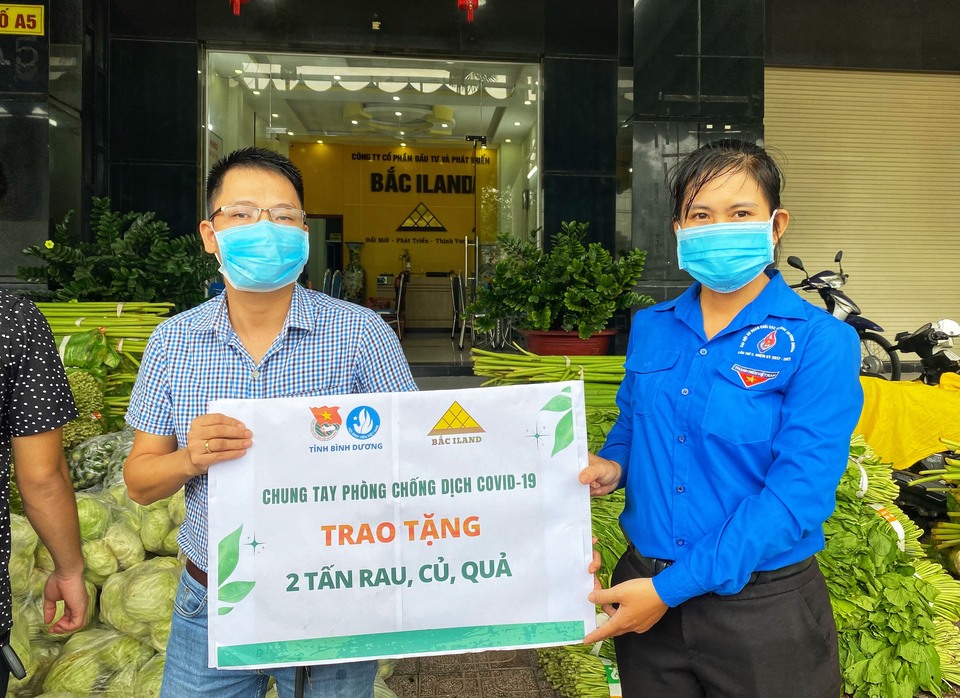 TTBD – Nhằm hỗ trợ, cung cấp kịp thời lương thực, thực phẩm trong công tác phòng chống dịch bệnh Covid-19 trên địa bàn tỉnh Bình Dương. Sáng ngày 14/7/2021, Ban Thường vụ Tỉnh Đoàn, Ban Thư ký Hội Sinh viên tỉnh phối hợp với Công ty cổ phần Đầu tư và Phát triển Bắc Iland tổ chức trao tặng 06 tấn rau, củ, quả cho người dân, học sinh, sinh viên tại các khu cách ly, khu phong toả trên địa bàn tỉnh Bình Dương.