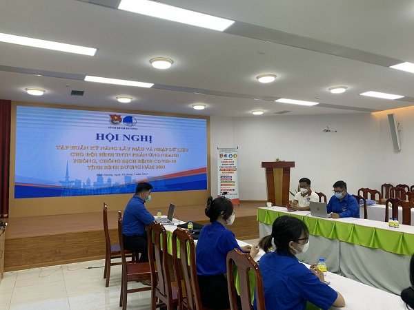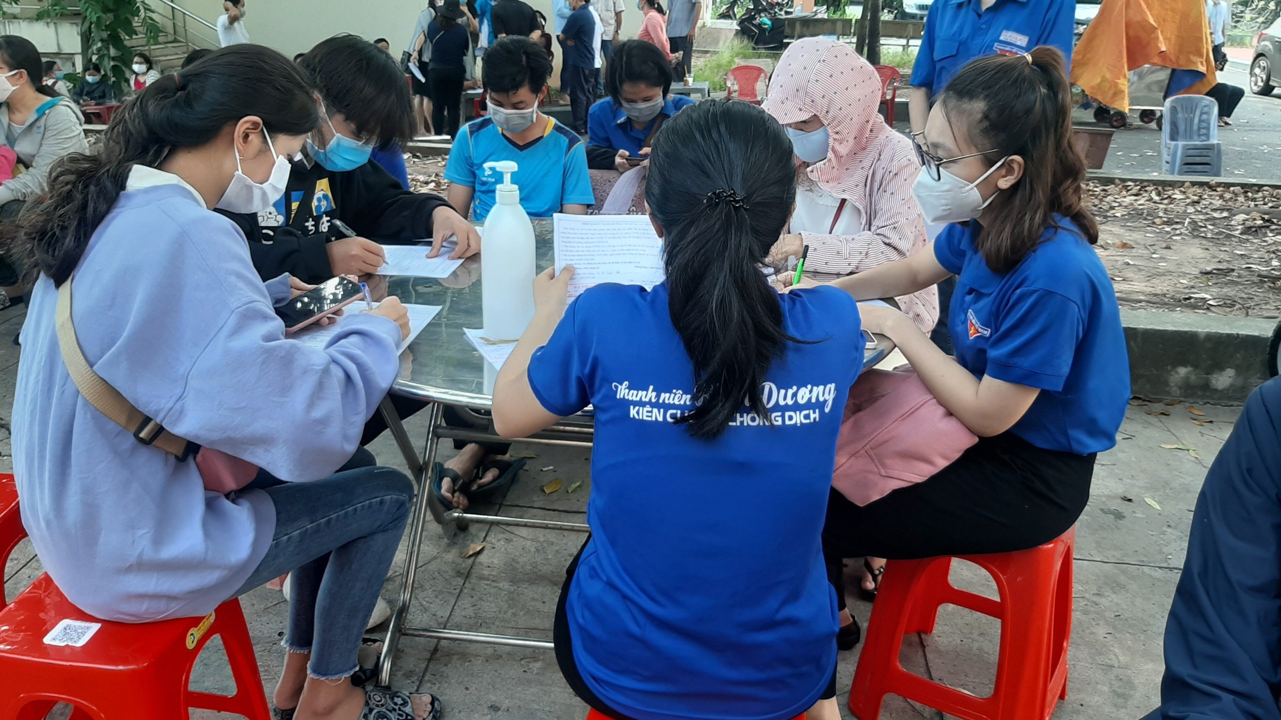 TTBD - Thời gian gần đây, tình hình dịch bệnh Covid-19 biến chủng mới đã và đang bùng phát trở lại tại nhiều địa phương trên địa bàn tỉnh, cụ thể tại Thành phố Thủ Dầu Một, Thuận An, Dĩ An, Thị xã Tân Uyên, Bến Cát, huyện Bàu Bàng, Dầu Tiếng và tiếp tục có dấu hiệu lan rộng với tốc độ lây lan nhanh, diễn biến phức tạp, khó lường. Nhằm hỗ trợ lực lượng trong công tác phòng chống dịch Covid - 19 trên địa bàn thành phố Thuận An. Chiều ngày 11/7/2021, Ban Thường vụ Tỉnh Đoàn, Ban Thư ký Hội LHTN Việt Nam tỉnh, Ban Chỉ huy Đội hình phản ứng nhanh phòng chống covid - 19 tỉnh Bình Dương tổ chức tiêm ngừa Vaccine Covid – 19 cho 21 tình nguyện viên tham gia hỗ trợ bên trong khu cách li tập trung tại thành phố Thuận An.