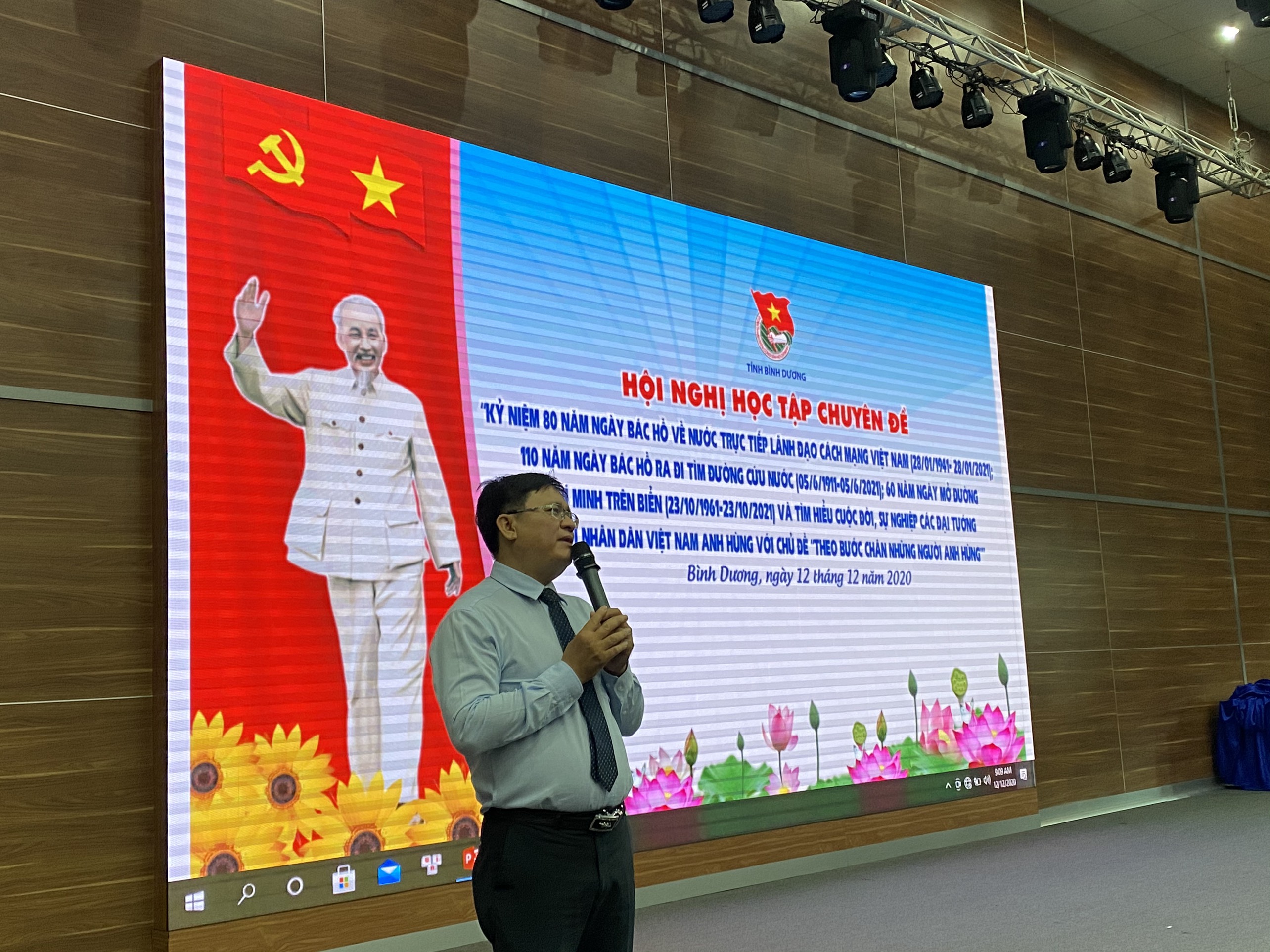 TTBD - Sáng ngày 12/12/2020, tại Trường Đại học Quốc tế Miền Đông, Ban Thường vụ Tỉnh đoàn tổ chức khai mạc tập huấn chuyên đề kỷ niệm 80 năm Ngày Bác Hồ về nước trực tiếp lãnh đạo cách mạng Việt Nam, 110 năm Ngày Bác Hồ ra đi tìm đường cứu nước, 60 năm Ngày mở đường Hồ Chí Minh trên biển và tìm hiểu về cuộc đời, sự nghiệp các Đại tướng Quân đội nhân dân Việt Nam với chủ đề “Theo bước chân Người anh hùng” cho 500 cán bộ Đoàn khối trung học phổ thông năm học 2020 - 2021.