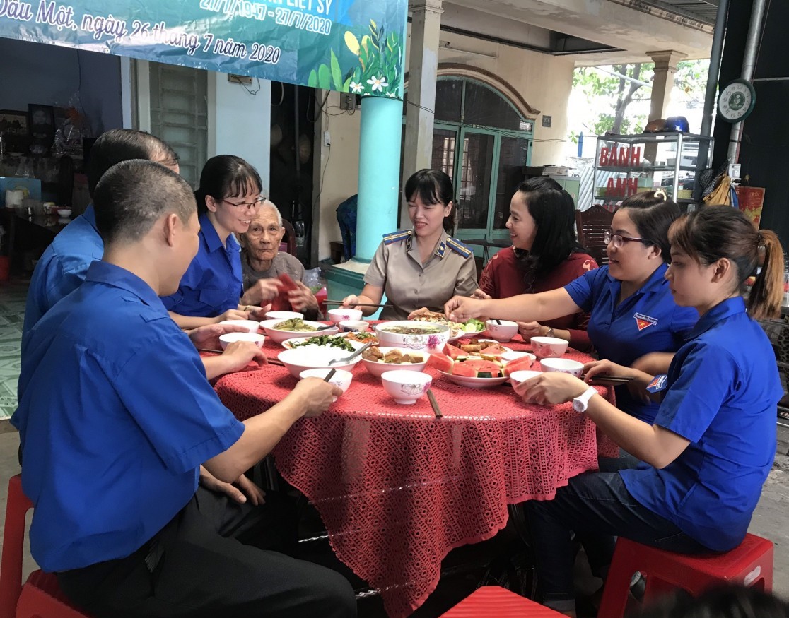 TTBD - Nhằm thể hiện vai trò của tuổi trẻ tỉnh Bình Dương trong các hoạt động “Đền ơn, đáp nghĩa” “Uống nước nhớ nguồn” nhân kỷ niệm 73 năm Ngày thương binh - Liệt sỹ (27/7/1947 – 27/7/2020), thể hiện tinh thần nghĩa tình hậu phương vững chắc, Ban Thường vụ Tỉnh đoàn Bình Dương tổ chức chỉ đạo Ban Thường vụ Thành đoàn Thủ Dầu Một tổ chức đoàn thăm hỏi, tặng quà, động viên gia đình cán bộ, chiến sĩ đang công tác và làm nhiệm vụ tại biên giới, hải đảo đang sinh sống và làm việc trên địa bàn tỉnh.