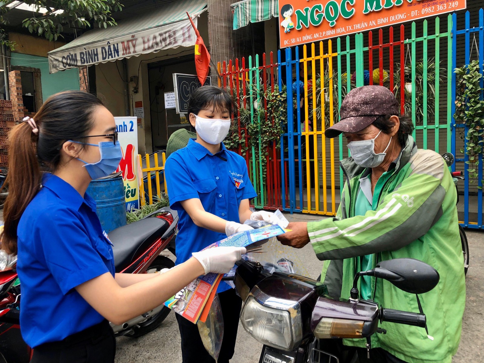 TTBD - Chào mừng Đại hội Đảng bộ cơ quan Tỉnh Đoàn Bình Dương nhiệm kỳ 2020 – 2025; với mục đích không để ai bị bỏ lại phía sau vì dịch bệnh Covid-19. Sáng ngày 15 tháng 4 năm 2020, Trung tâm hỗ trợ thanh niên công nhân và lao động trẻ tỉnh Bình Dương tổ chức chương trình “Bữa sáng yêu thương” đã phát 200 suất ăn sáng miễn phí trong thời gian dịch Covid – 19 cho người dân và thanh niên công nhân có hoàn cảnh khó khăn trên địa bàn KCN Mỹ Phước 3. (thị xã Bến Cát). Tất cả những người dân khi đến nhận suất ăn sáng đều được các bạn tình nguyện viên (là thành viên các CLB kết nối TNCN) yêu cầu đeo khẩu trang, rửa tay bằng dung dịch sát khuẩn để góp phần phòng, chống dịch Covid-19.