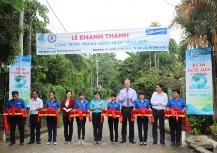 TTBD - Sáng ngày 28/9/2016, tại khu phố 5, phường Mỹ Phước, TX.Bến Cát, Hội Liên hiệp thanh niên tỉnh phối hợp với Công ty TNHH SABMiller Việt Nam và Đoàn cơ sở Công ty Cấp thoát nước và Môi trường Bình Dương tổ chức lễ khánh thành “Dự án nước sạch” năm 2016.