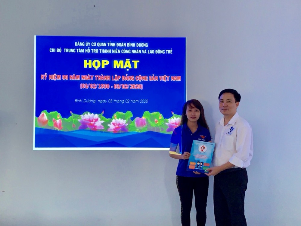 Buổi sáng cùng ngày, Chi bộ trung tâm hỗ trợ thanh niên công nhân và lao động tỉnh Bình Dương (trực thuộc Đảng ủy cơ quan Tỉnh Đoàn) cũng đã tổ chức họp mặt Kỷ niệm 90 năm Ngày thành lập Đảng Cộng sản Việt Nam (03/02/1930 - 03/02/2020) với những nội dung thiết thực như: Ôn lại truyền thống 90 năm ngày thành lập Đảng, Tọa đàm sắt son niềm tin với Đảng, Chi đoàn trao danh sách 05 đoàn viên ưu tú học lớp đối tượng đảng của Trưởng mầm non Ngôi sao nhỏ (trực thuộc Trung tâm).